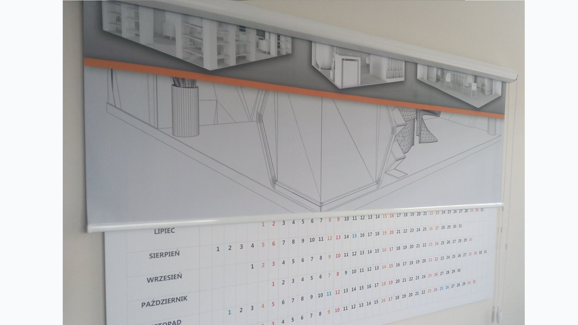 Terminarz chowany pod roletą.